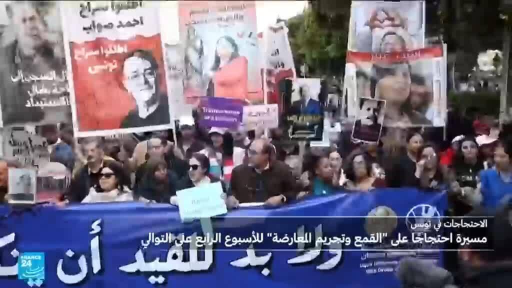 تونس: المعارضة تتظاهر للأسبوع الرابع دفاعا عن الحريات واحتجاجا على أحكام بحق سياسيين
