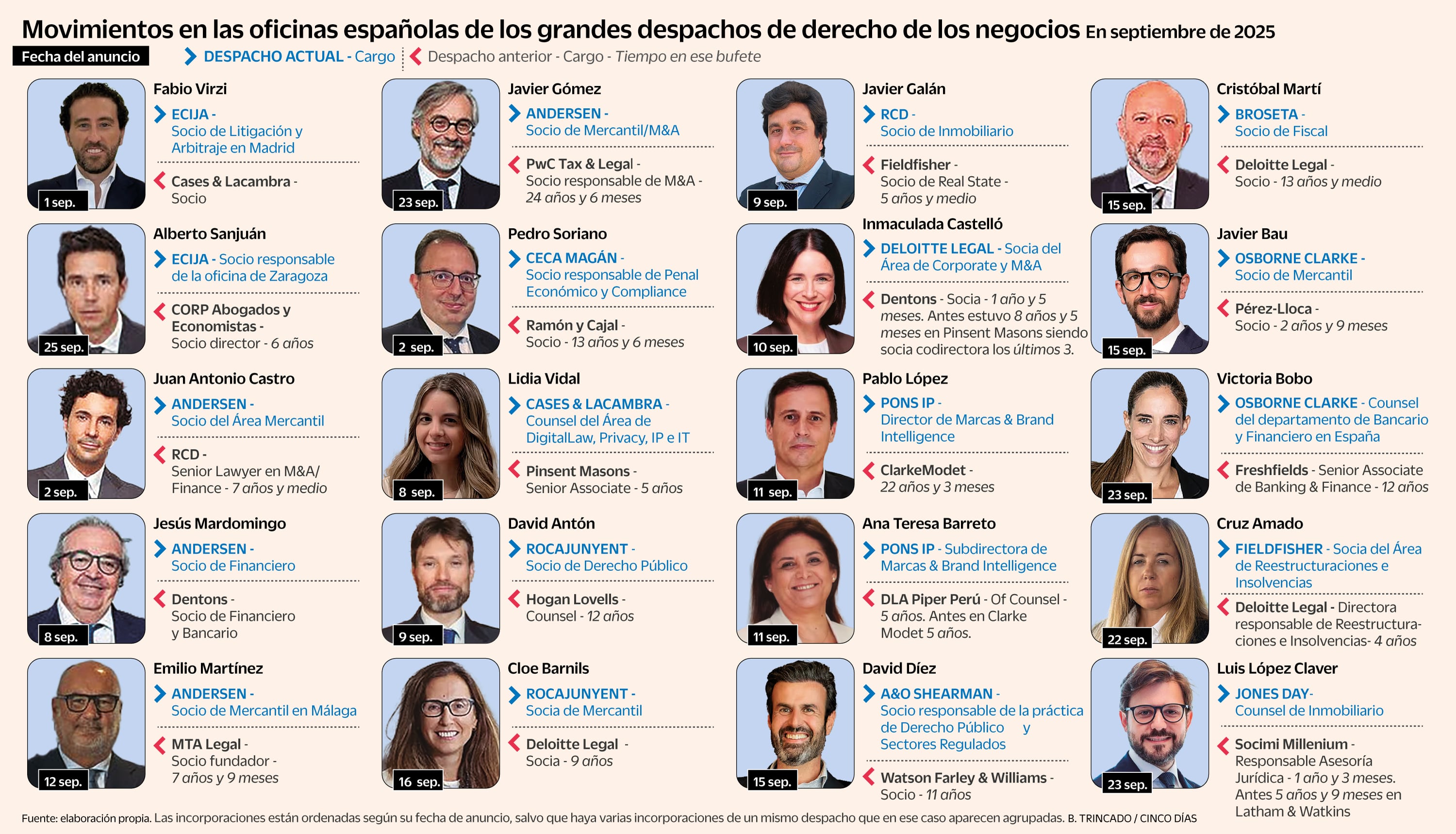 El mes de septiembre se ha consolidado como una de las épocas con más dinamismo en el mercado legal. Igual que ocurre en enero, cuando arranca el año, el inicio de curso es la temporada en que los grandes despachos de derecho de los negocios concentran los anuncios de nuevas incorporaciones. No es casual: la mayoría de estos movimientos se fraguan con meses de antelación, pero se hacen públicos tras el período estival, cuando los profesionales y las firmas buscan abrir etapa y dar visibilidad a su estrategia. Marta Sanz, especialista en perfiles legales y fiscales en Wyser, subraya que este es un mes natural para estos anuncios: “Tanto septiembre, como enero son buenos momentos para iniciar un nuevo reto. Lo que vemos ahora son fichajes que se han preparado antes del verano”.