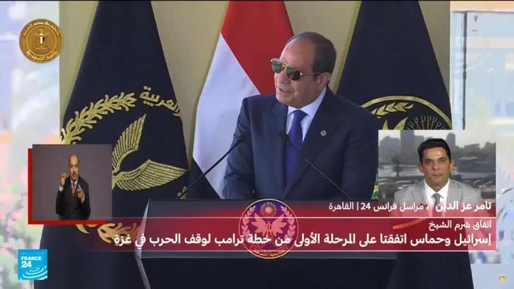 رحّب الرئيس المصري عبد الفتاح السيسي الخميس بالإعلان عن "اتفاق لوقف إطلاق النار وإنهاء الحرب في غزة بعد عامين من المعاناة". ورأى أن "العالم شهد لحظة تاريخية تُجسّد انتصار إرادة السلام على منطق الحرب" بالتوصل إلى الاتفاق بعد أيام من المحادثات في مصر، م