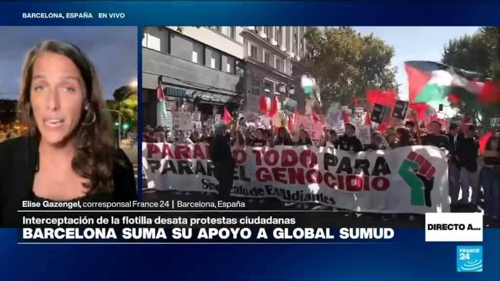 En Barcelona y otras ciudades de España, manifestantes responden al llamado de los activistas de la Flotilla Global Sumud, detenidos por Israel. Exigen su liberación y afirman que la detención ha reactivado la movilización social. Entre los 65 españoles