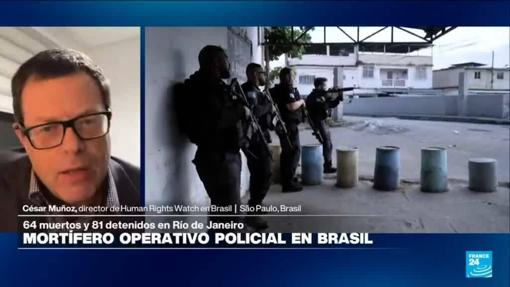 Río de Janeiro fue el escenario de uno de los operativos policiales más grandes de Brasil, en el que murieron 64 personas, entre ellas cuatro policías. Human Rights Watch (HRW) Brasil tildó de "desastre" el asalto de las fuerzas de seguridad y de "una enorme tragedia" lo ocurrido, a la vez que pidió a la Fiscalía investigar las circunstancias de "cada muerte". En France 24 hablamos con César Muñoz, director de HRW Brasil.