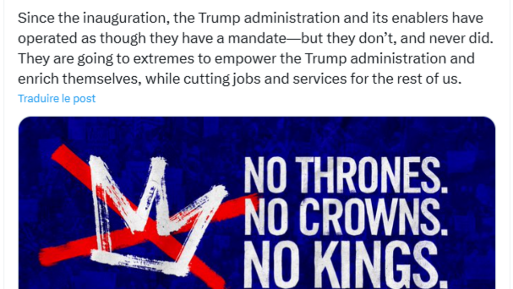 من المتوقع أن يخرج السبت، ملايين الأمريكيين إلى الشوارع في مختلف أرجاء الولايات المتحدة، احتجاجا على سياسات الرئيس دونالد ترامب. وتأتي هذه الاحتجاجات تلبية لدعوة أطلقتها حركة "لا ملوك" وبمشاركة عدة منظمات حقوقية.