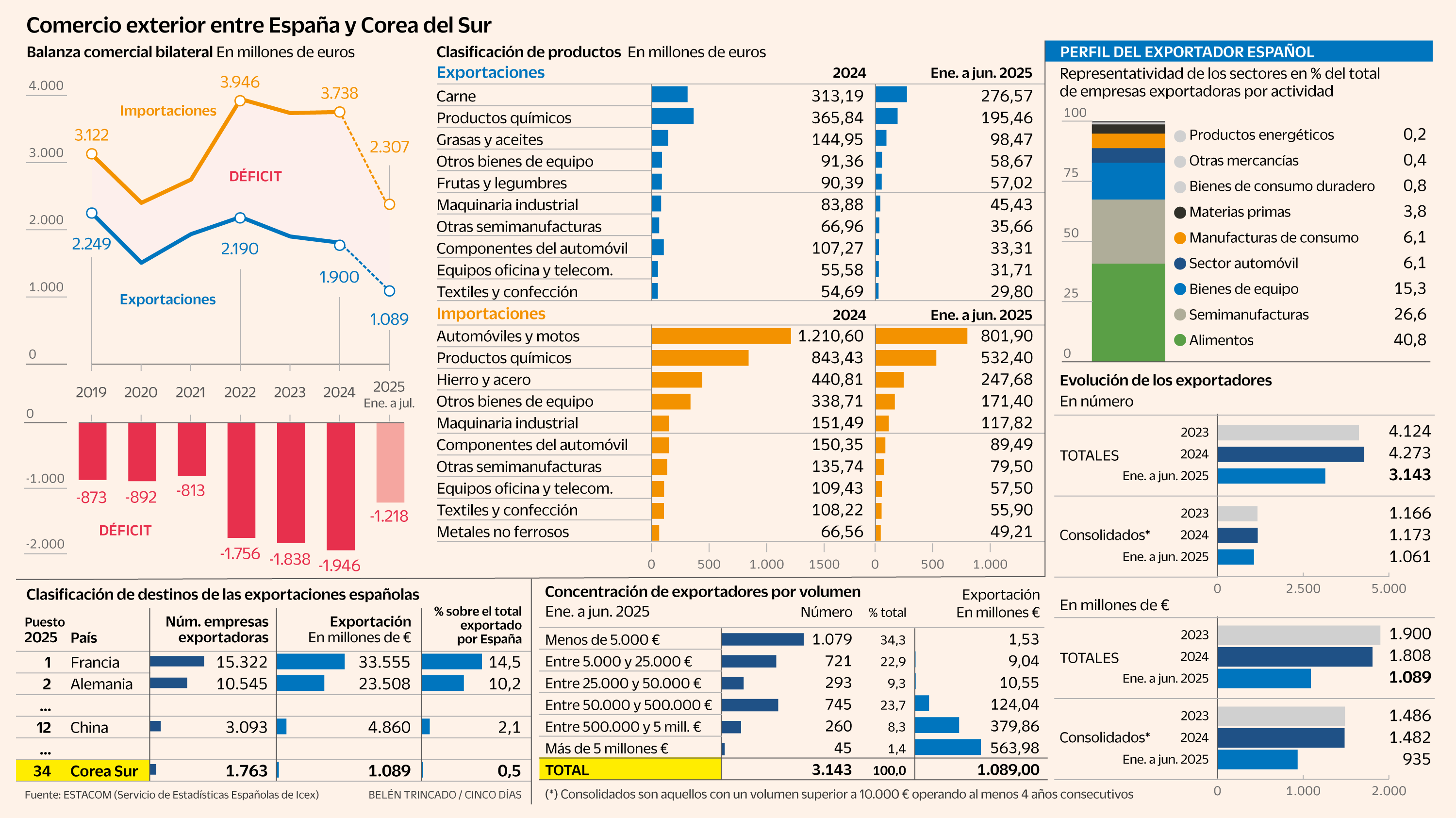 Con una población similar, España y Corea del Sur comparten unos niveles de renta y PIB semejantes; sin embargo, el comercio bilateral –que tuvo su despegue en 2011 tras el acuerdo de libre comercio con la Unión Europea– ha sido históricamente deficitario para nuestro país.