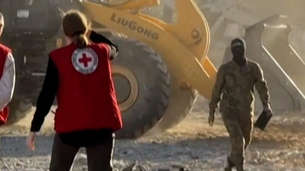 Des engins de chantier et des camions sont en action au milieu des débris pour tenter de retrouver des dépouilles d'otages dans le quartier d'al-Touffah, à Gaza, avec la participation d'équipes du Comité international de la Croix-Rouge. Des pelleteuses c